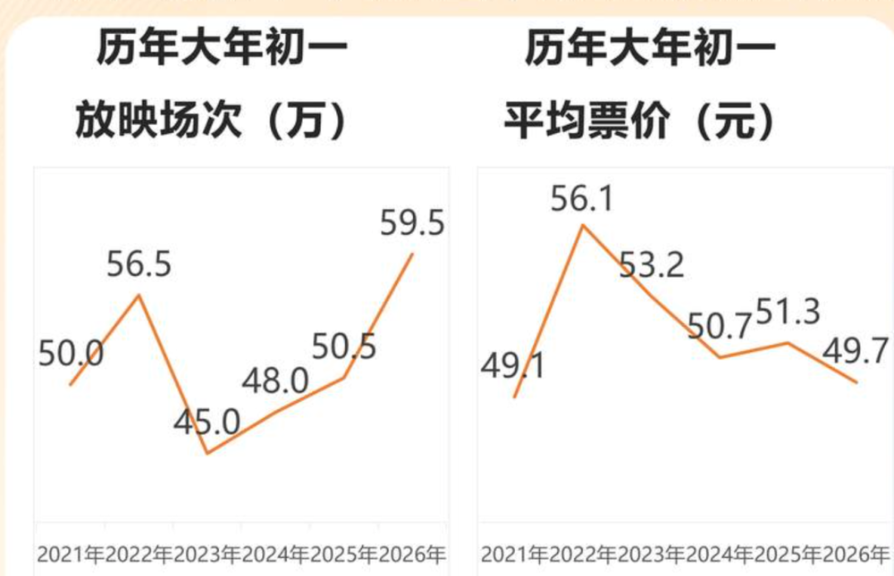 其实这里面很大一部分原因在于,春节的经济效益也在发生改变。今年春节大年初一营业影院数量创下新高,达到了13092家,相比去年大年初一增加了489家。在总场次方面同样创下新高,达到了59.5万场。