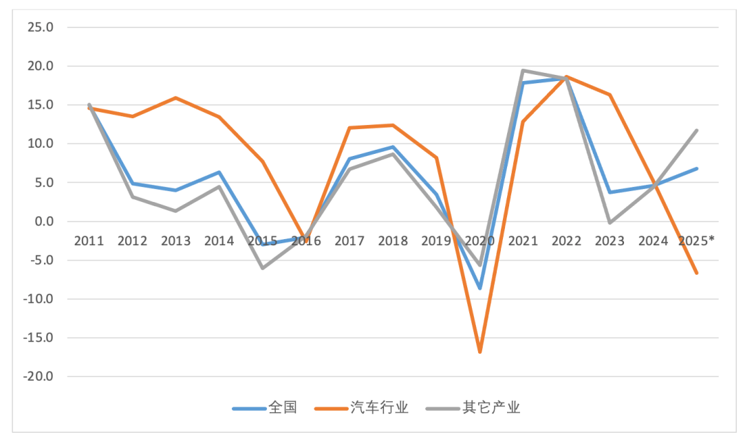 图2.墨西哥对美出口年增长速度,2011-2025