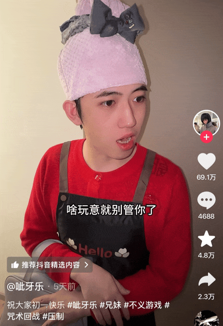 对比起来,往年假期顶多算是小打小闹。今年这帮人显然是发狠了忘情了,几十万点赞的视频一个个出,卷出了好几位出名的“整活头子”。
