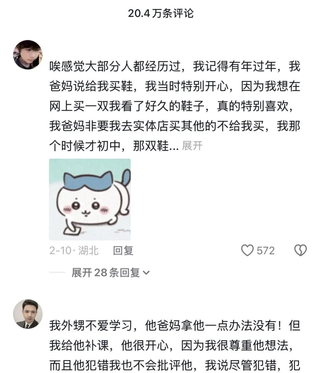 虽说他的作品整体还是“整活”基调,但评论区里,往往有人大段地聊起自己的家庭。