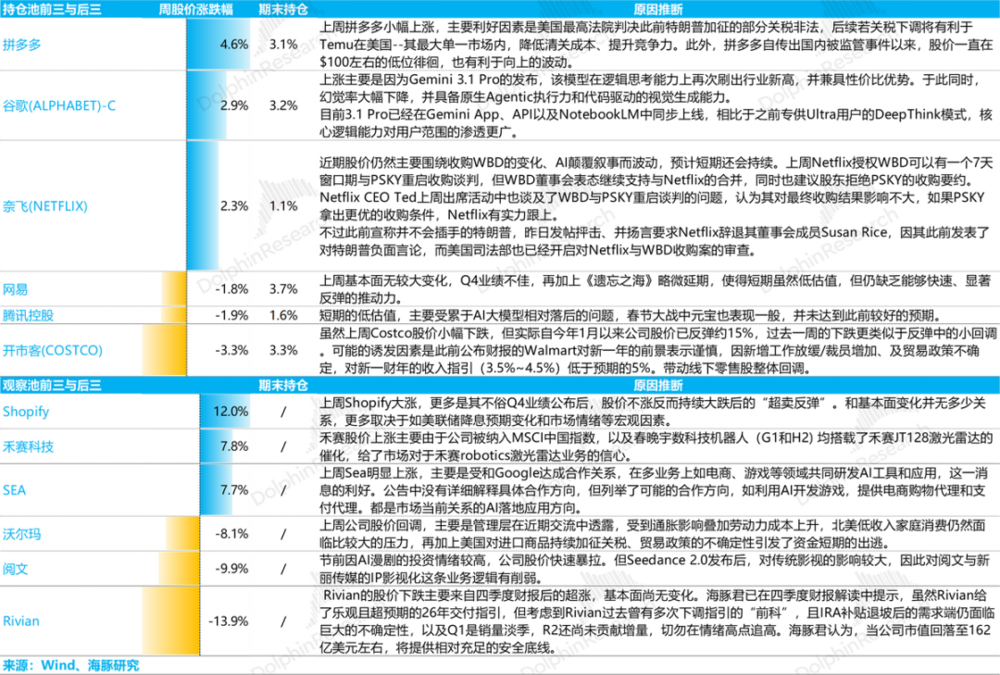 上周海豚君的虚拟组合Alpha Dolphin涨幅靠前的主要是此前股价回落较多同时受益于关税削减的利好。此外黄金假期期间涨幅也较好,对组合形成了正面的托底。