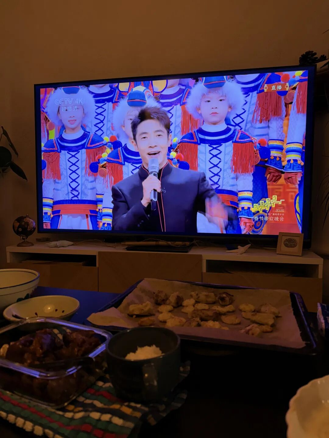 到了晚上,我和朋友一起打开春晚。其中一个朋友的对象是法国人,我们交流起来很困难,但还是尽量给他翻译春晚节目在演什么。
