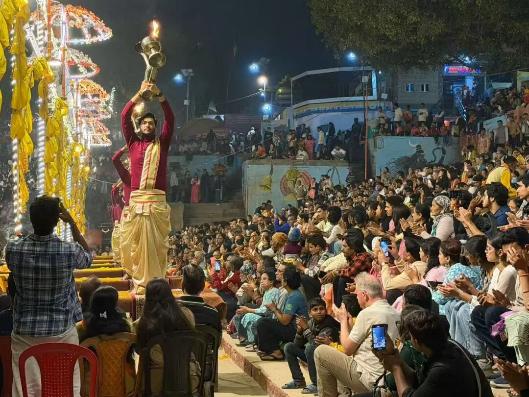 春节期间,我主要待在瓦拉纳西和阿拉哈巴德,几乎每天都去拍日出和日落。日出时光线柔和,人比较少,氛围和白天不一样。在阿拉哈巴德,我参加了一个叫Magh Mela的大型朝圣沐浴节,每天有几万到十几万人到恒河与亚穆纳河交汇处洗澡。恒河的夜祭和晨祭非常有美感,当地居民很多都是全家参加,像狂欢一样,而不是那种肃穆的宗教氛围。