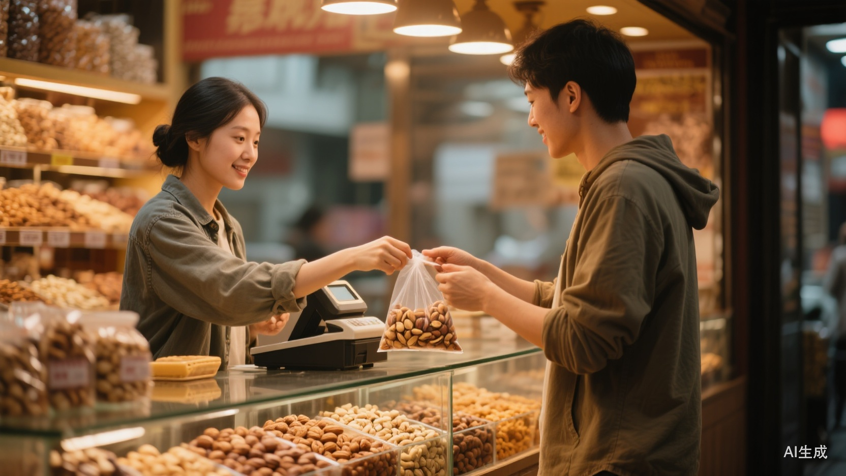 曾经平易近人的街边炒货店,摇身一变成了黄金商圈里的网红铺位,店里的核桃花生,身价也跟着水涨船高。