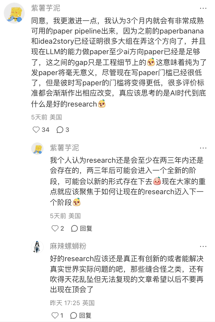 有人认为,与其关注单纯scale出大量「普通conference paper」,不如将算力与模型能力投入到真正困难的开放问题上,这或许才是更具长期价值的方向。