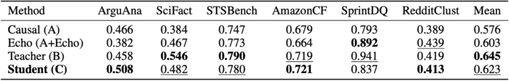 当然,short paper气质也很足:细粒度成对任务提升有限,长文档检索反超teacher的机制还没完全讲透。