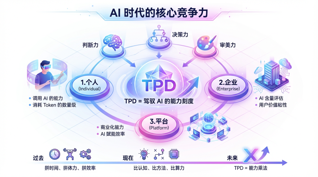未来,个人、企业、平台都会用TPD来评估自己的AI含量,产品开发者也会以此来衡量对用户的价值粘性和商业化能力。