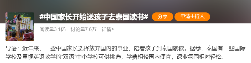 所以社交媒体上有华人家长发出提醒,“资产不到一千万,千万别来泰国陪读”。