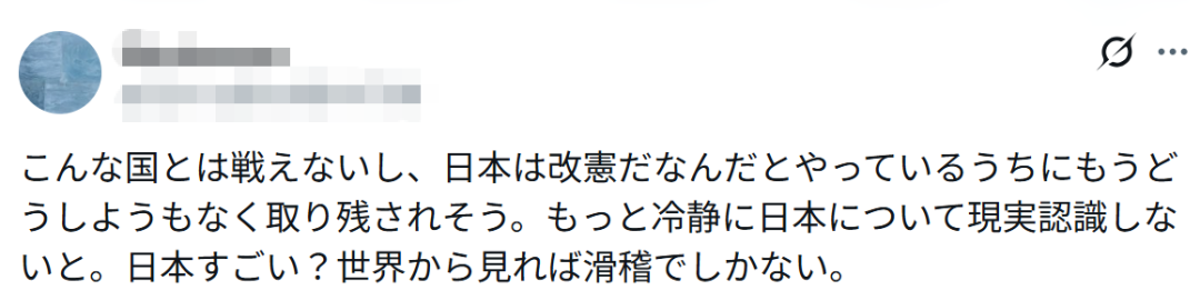 我们无法与这样的国家抗衡,而日本不断试图修改宪法,似乎注定要被远远甩在后面。我们需要更加冷静,认清日本的现实。日本厉害吗?从全球的角度来看,这简直荒谬至极。