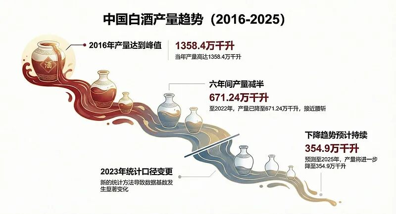 未来25年,25~60岁的人口(我大概用AI测算了一下,其实一直想做,但是有了AI非常方便)大概要减少28%,减少2.3亿适饮人口,尤其是未来7年,剧烈减少,每年几乎都有千万级的变化,假设线性外推,肯定是个减量,这不能掩耳盗铃。上一轮周期,业内就在讨论这个问题,因为大家是有体感的,就是感觉喝酒的人在减少,但是数据上看,真正的减少是2023年开始急速下降,之前其实适饮人口是增长的,可能当时大家只是觉得不愿意生孩子了,人口会减少,但是真正的适饮人口减少,是这一轮产业周期遇到的新问题。