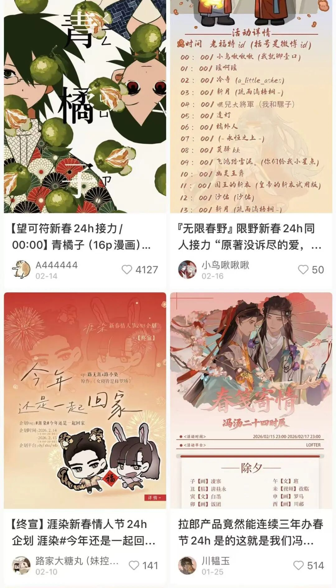 至于同人作者们,也像往常一样操办起了新春活动。即便如今处处都是AI,连春晚也充斥了人工智能与机器人,一些B站UP主依旧坚持手搓,整了一堆自制春晚;