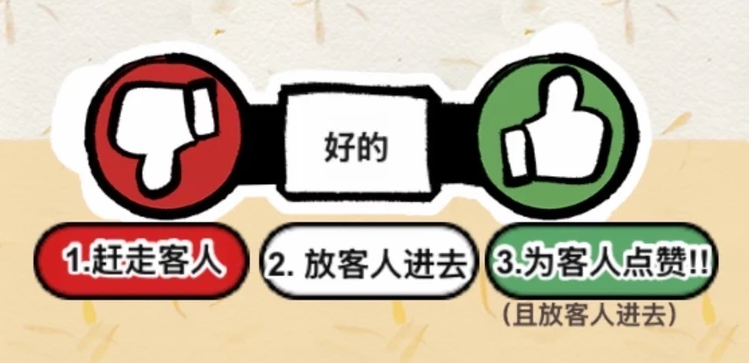如果你认同来者的说法,便可以选择放它进去,并为它点赞;如果不认同,则可以使出雷霆手段,即扇巴掌,以此将它驱逐出去。
