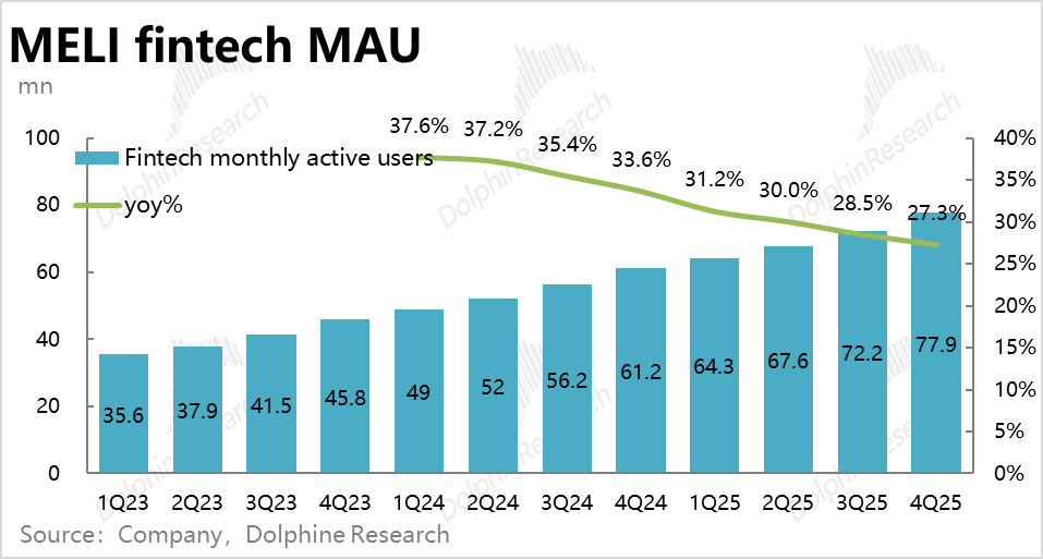 Meli金融板块的第一指标,金融月度活跃数量本季达7790万人,环比净增570万,是统计以来的单季净增最高值。金融板块客群拓展同样不错。