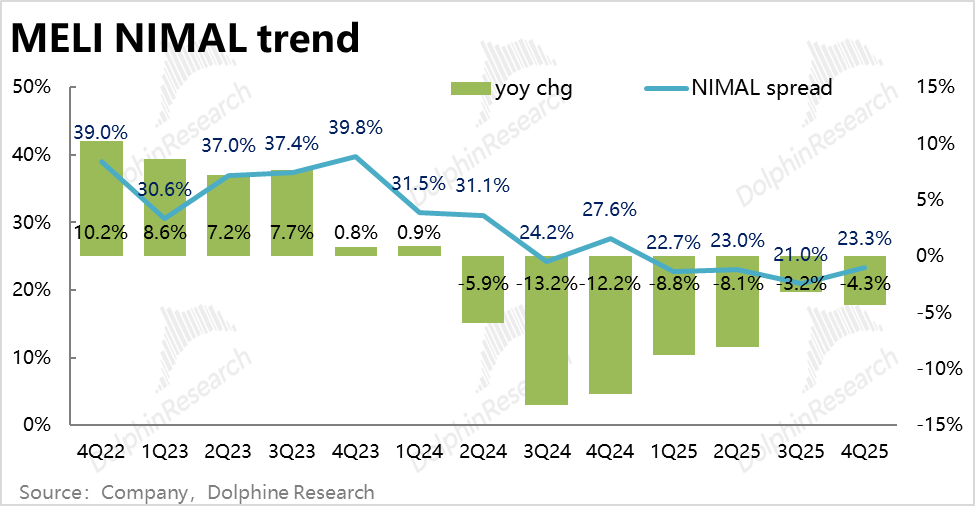 虽然净息差NIMAL仍因信用卡贷款占比的提升,同比依然在下滑。但环比来看,毛利息率、NIMAL都有进一步有企稳的迹象。公司也明确表示,信用卡业务在度过了最初的12~18月发展期后,已逐步进入了NIMAL盈亏平衡状态,其中在巴西的信用卡业务已有75%达成盈亏平衡。