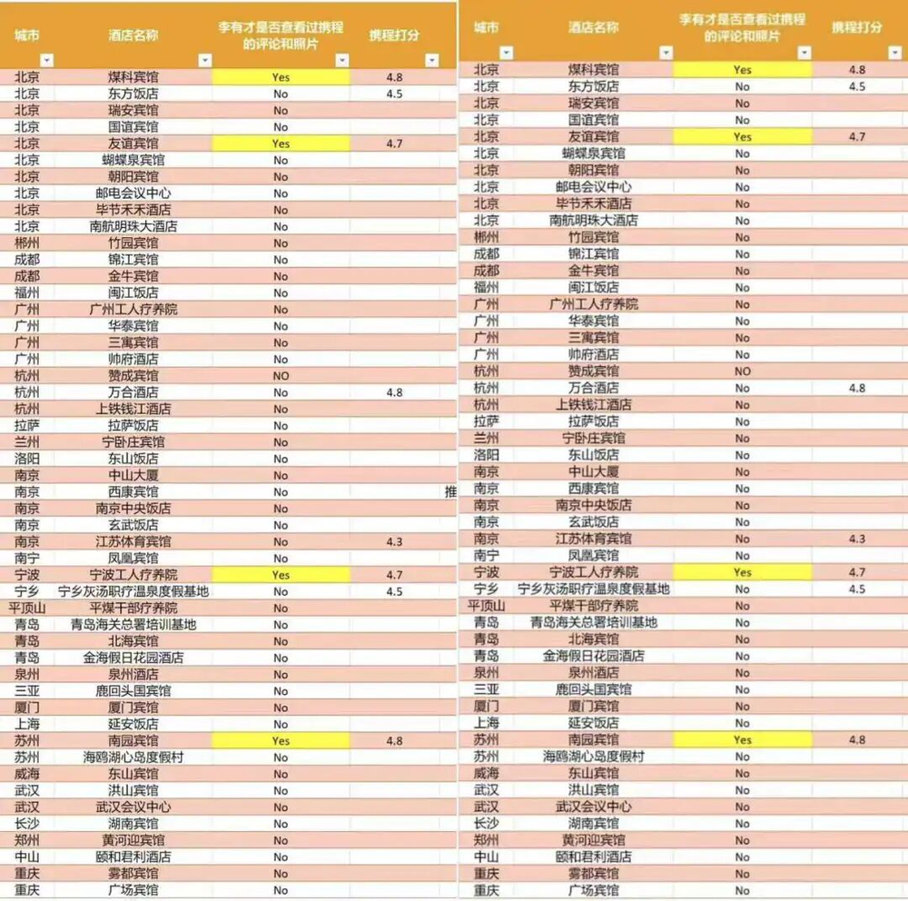 网友统计的老干部酒店(图源:小红书@李有才)
