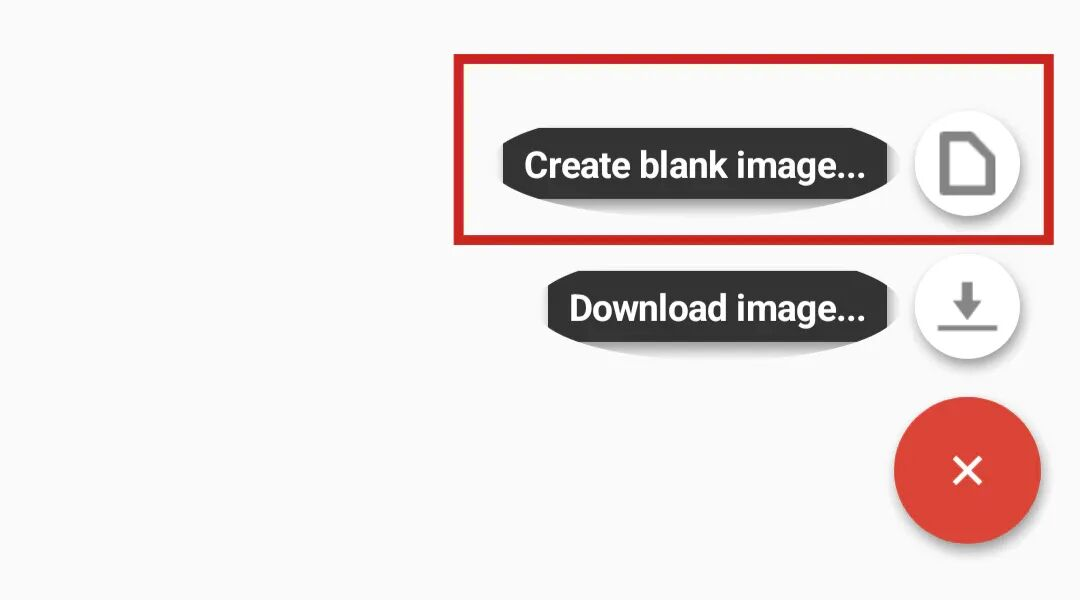 首先在DriveDroid主界面点击右下角加号,选择「Create blank image」。