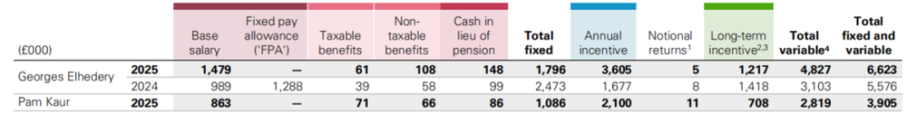 高管层面同样如此。CEO艾桥智(Georges Elhedery)全年总薪酬为662.3万英镑(约896.1万美元),同比增长约18.78%。
