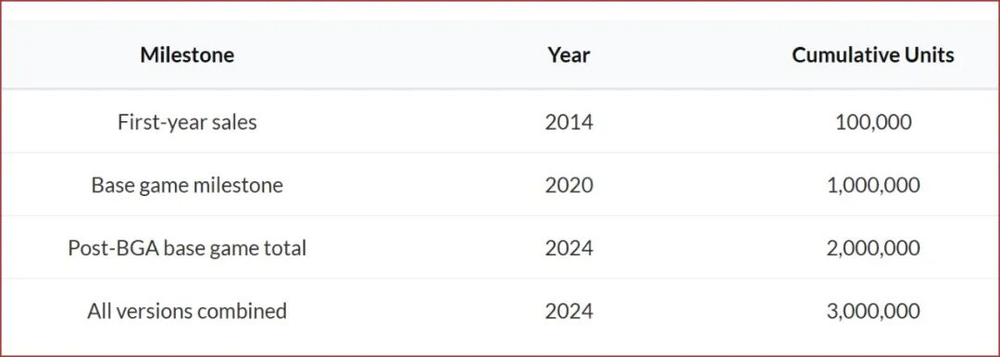 2014年发售,10多年时间,实体版的全球销量超过百万。