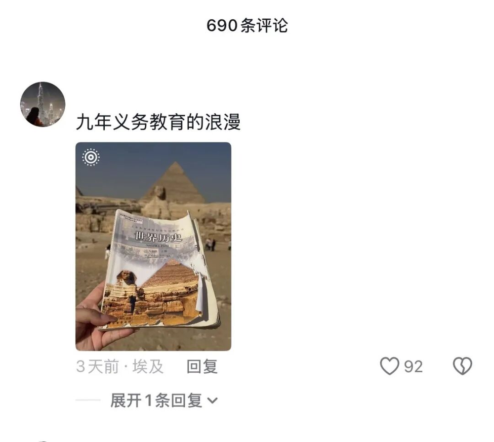 这也导致在如今的埃及景点里,举着初中课本虔诚找角度的中国人,硬是成了一股清流。