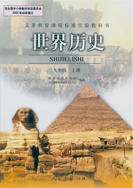 最早的时候,是有聪明网友想起来,九年级上历史书的封面,就是金字塔和狮身人面像。