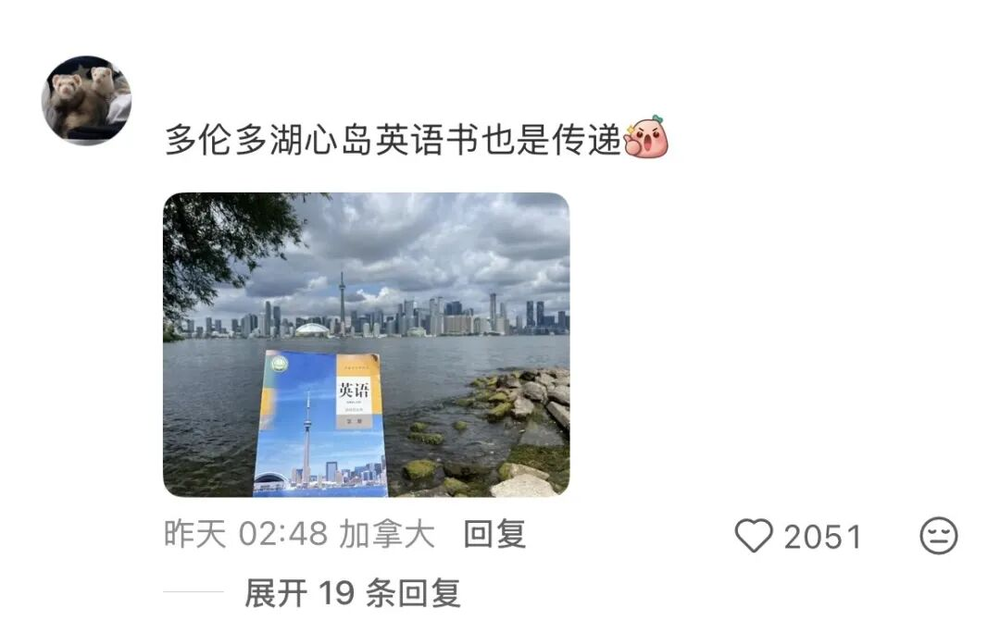 在多伦多湖心岛,就有英文课本的身影,据称也形成了某种教材接力的行为。