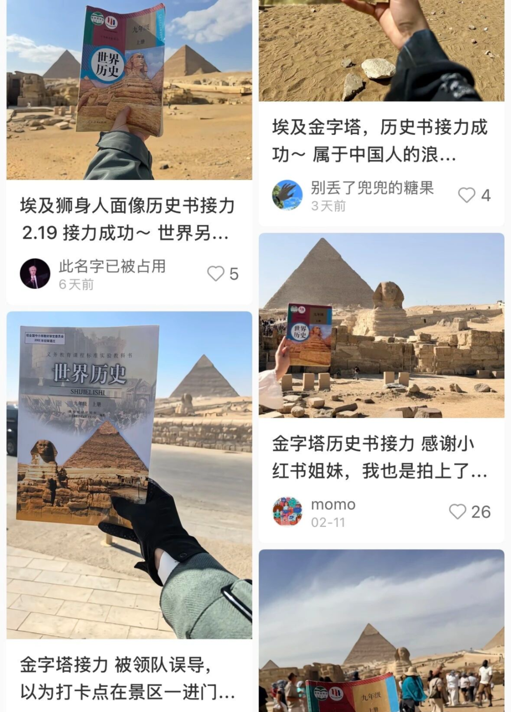 如今,曾经让中国学生们头疼的九年级历史书,已经在埃及金字塔前形成了一道特殊的风景线。