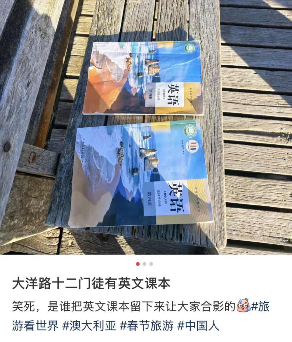 在大洋路,课本也开启了共享模式。很多中国游客对着十二门徒岩举起教材,顺带找回当初被单词支配的恐惧。