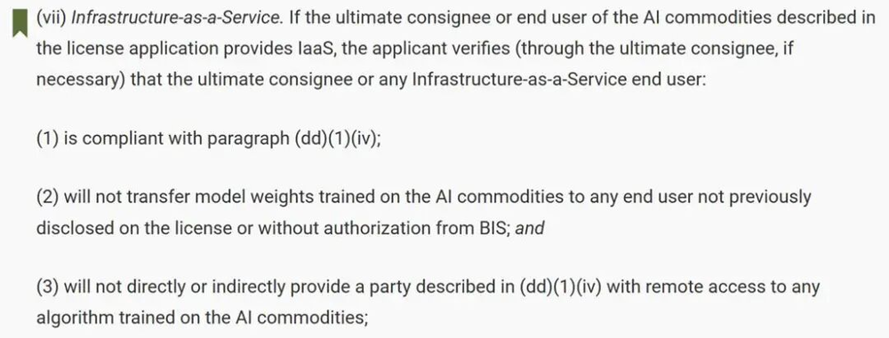 最新BIS的合规要求包括:证明这些芯片不会挤占美国客户现在与未来的产能;出口数量不超过美国出货的一定比例;H200芯片在离境前必须经由符合资质的第三方查验;执行严格的“了解你的客户”(KYC)程序,筛查并防止未经授权的远程访问;申请人必须掌握部署于中国境内H200的任何预期(intended)的最终用户,以排除“推定拒绝”实体,或敏感用途;基于H200芯片训练的模型权重与算法,无法被“推定拒绝”实体或“未披露主体”或敏感用途访问。