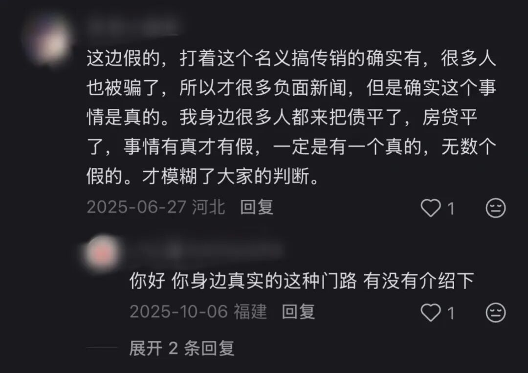 没错,熟悉的剧本,这就是我们都在新闻里看到过的传销。很老套的骗术:门槛费、拉人头、团队计酬。唯一的创新,只是给它披上了一件平债政策的华丽外衣,并精准地筛选了最脆弱、最渴望奇迹的猎物:负债者。