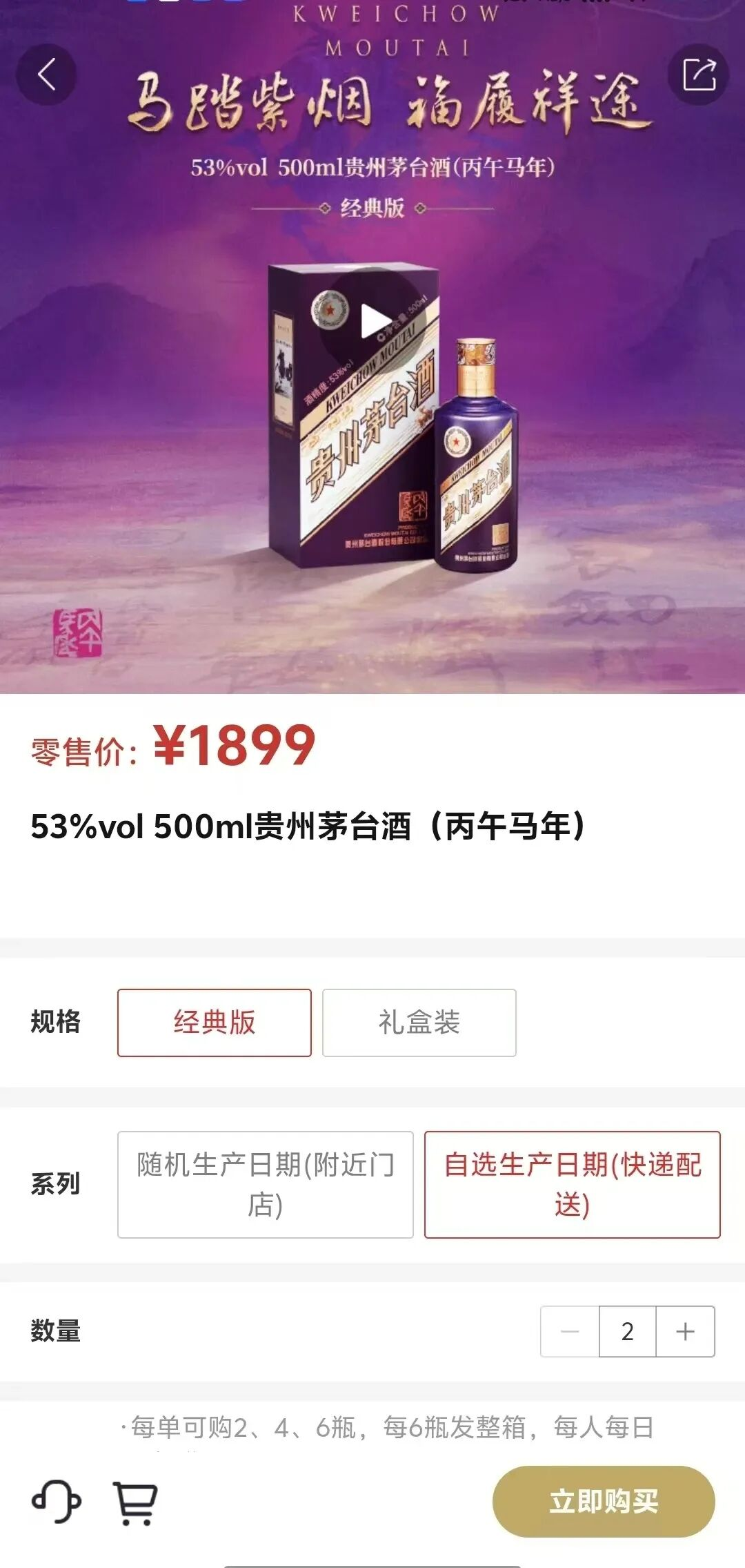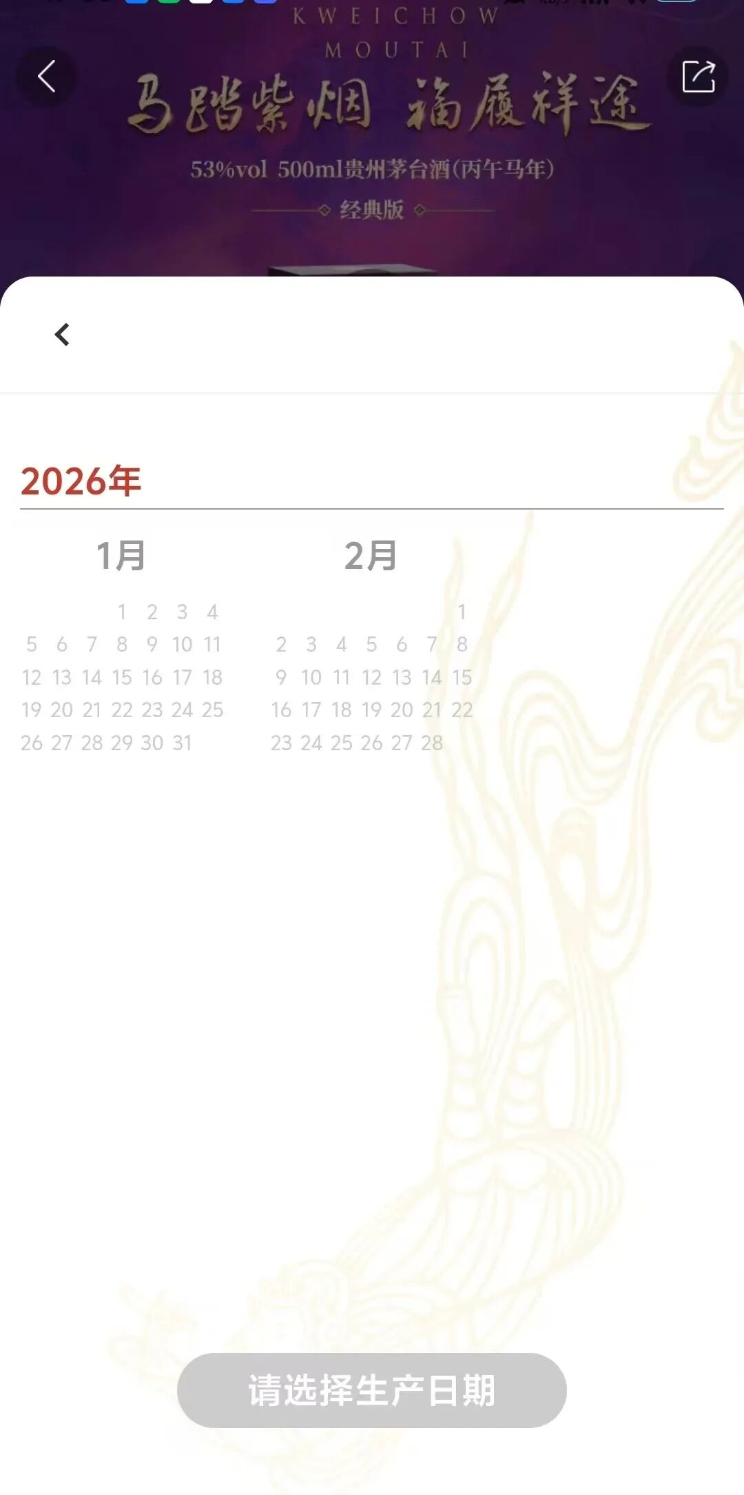 昨天(2月26日),名酒研究所(ID:MJYJS2024)注意到,茅台在“i茅台”APP上上线了一项新服务:消费者购买丙午马年生肖酒时,可以自选瓶身上的农历生产日期。