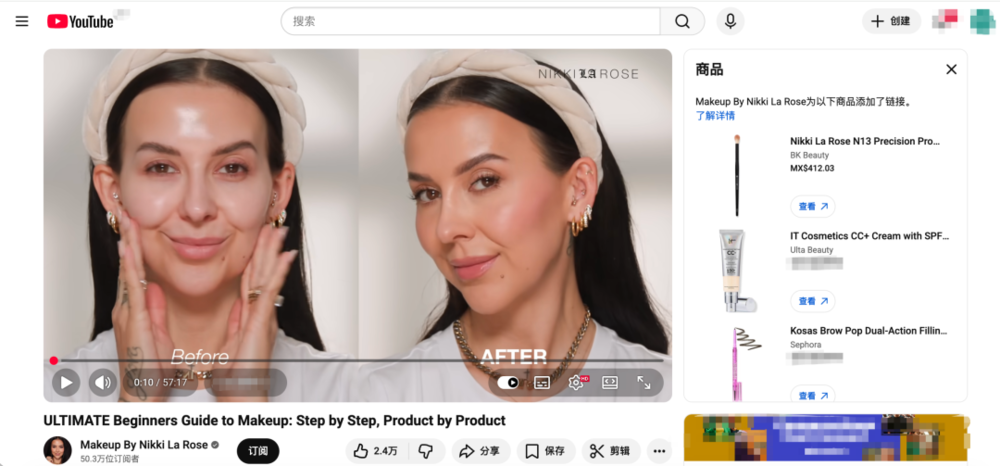 YouTube对中国美妆品牌的