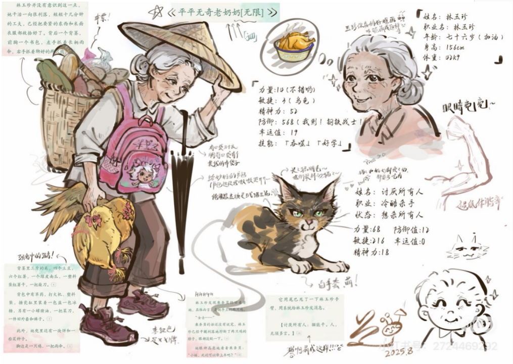 这种对现实的化用不仅仅是增加了小说的厚度和深度,也带来了前所未有的趣味。谁能想到一个长期遭受压迫和虐待的虚弱老奶奶不仅不弱,甚至因为受的苦成为了无限流的强者呢?