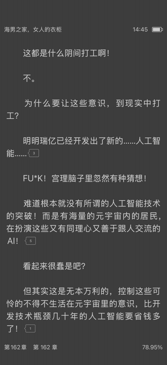 很难形容这部小说给我带来的震撼,但它确实彻底扭转了我“网文也许只能看着爽一爽”的刻板认知。原本我只把网文阅读当成催眠仪式,在读到这本后竟精神到睡不着。