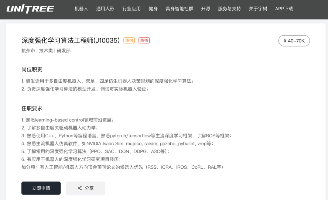 企业端的岗位需求和薪资水平则更为直观。以春晚舞台上备受关注的宇树科技为例,其官网显示,当前正在招聘机械工程师、嵌入式硬件工程师、机器人运动控制算法工程师、机器人测试工程师等多个岗位。