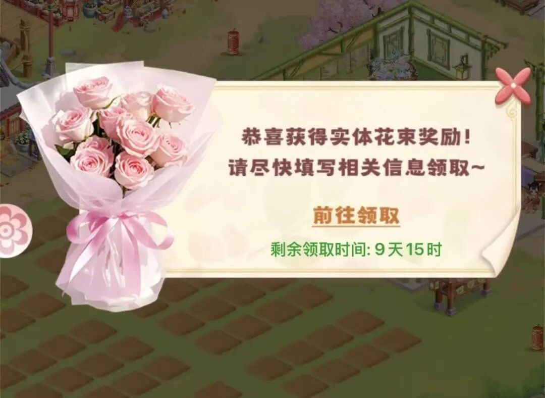 当时,游戏弄了一个颇为新颖的营销活动,叫“玩游戏,得真花”。顾名思义,玩家在游戏里收获鲜花,会随机掉落花卉卡,填写地址后,就可以在现实中收获真花快递。