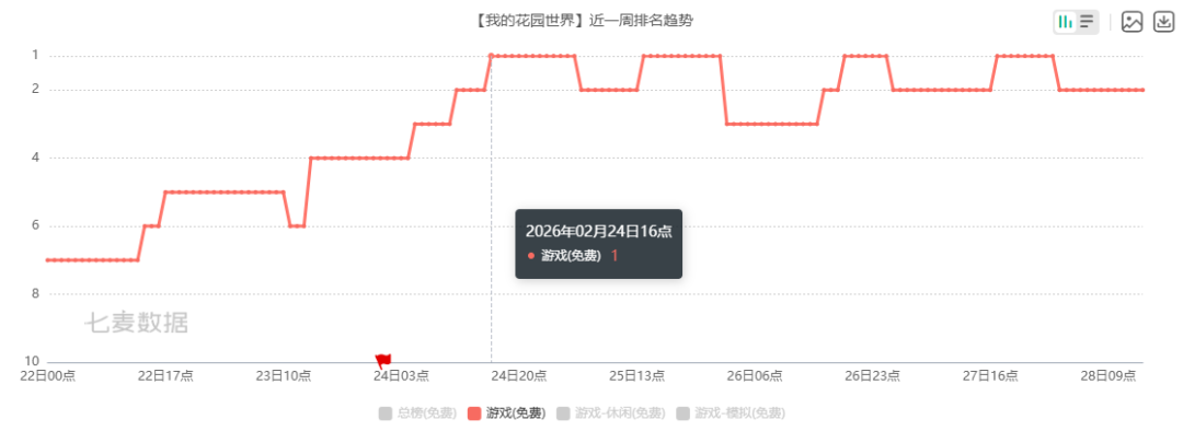 也就是说,在竞争最为激烈的春节档,《我的花园世界》不仅打赢了小游戏领域的霸主《无尽冬日》,还在免费榜短暂压过了《王者荣耀》《三角洲行动》一头,是实打实的黑马。