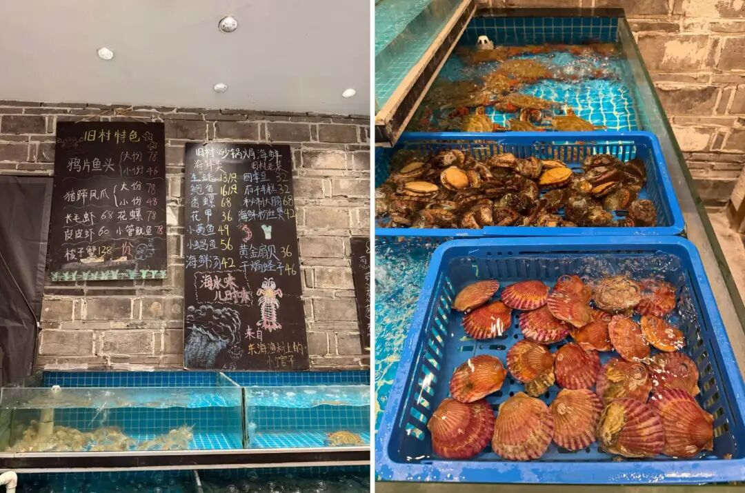 旧村,成立于2019年,人均100元,强化“东海渔村”印象,以上海为主阵地,布局全国门店大约8家。旧村在空间设计上更偏朴素和生活感,店里大量使用青砖、藤编等自然材料,菜单是手写黑板式。
