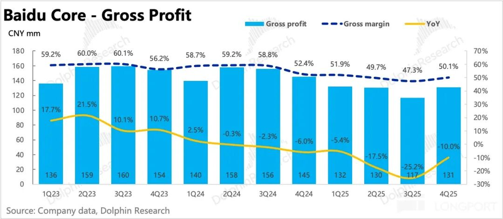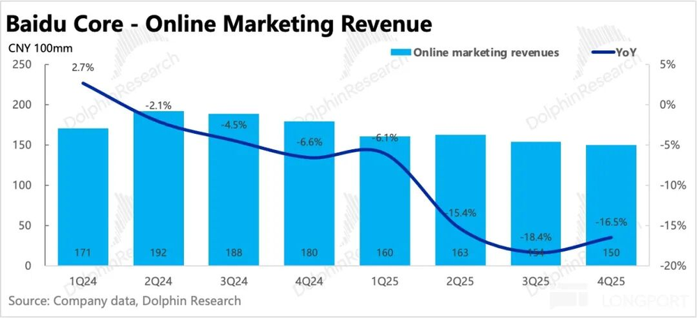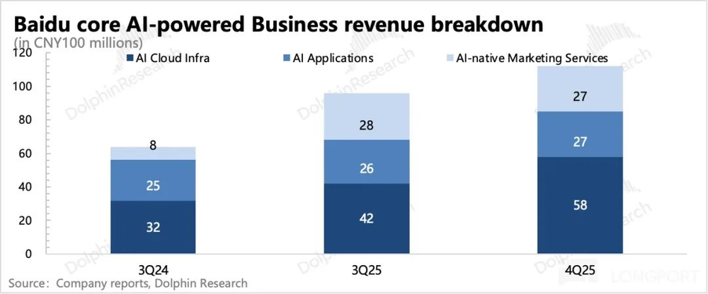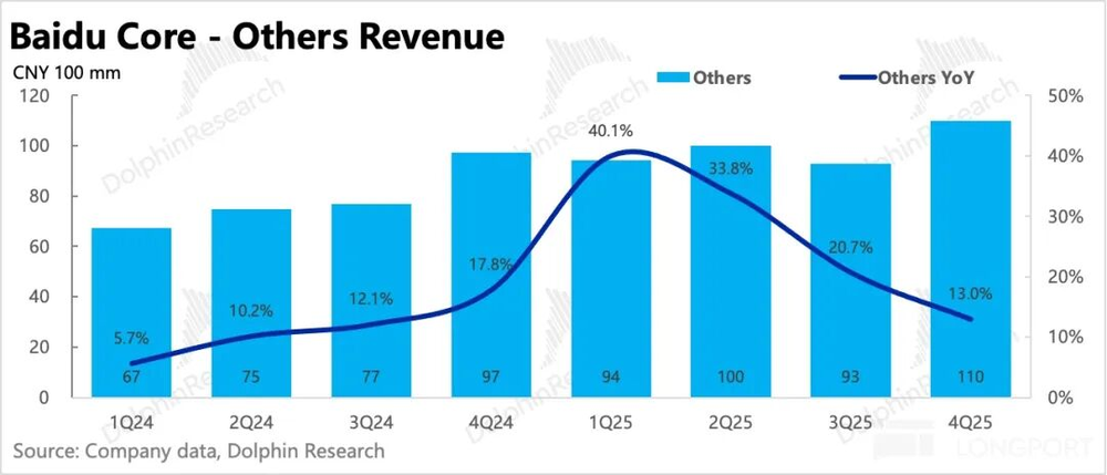 (2)AI应用(包括百度文库、百度网盘和数字员工等产品):环比持平,估计网盘业务还有拖累。