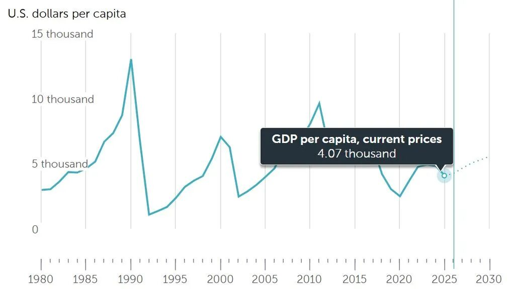 1980年至2025年伊朗人均GDP走势 图片来源:IMF