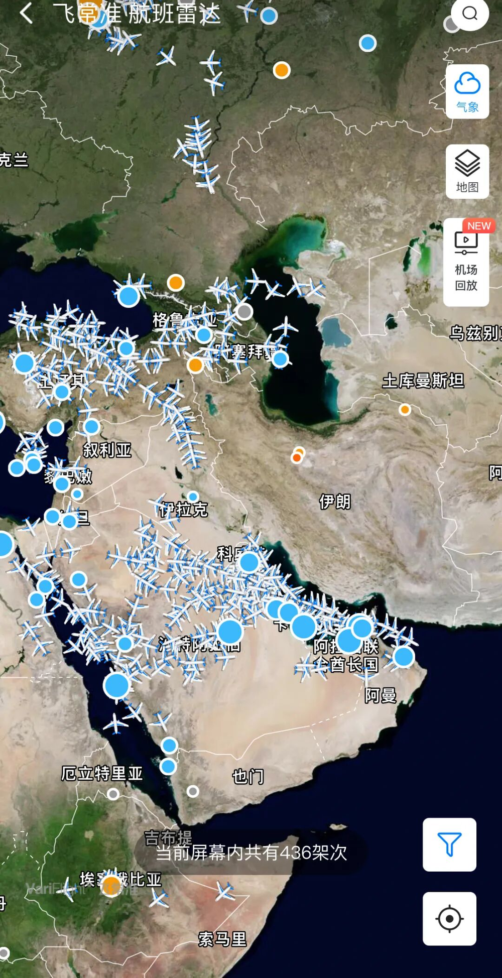 伊朗宣布关闭全国领空六小时 图片来源:飞常准