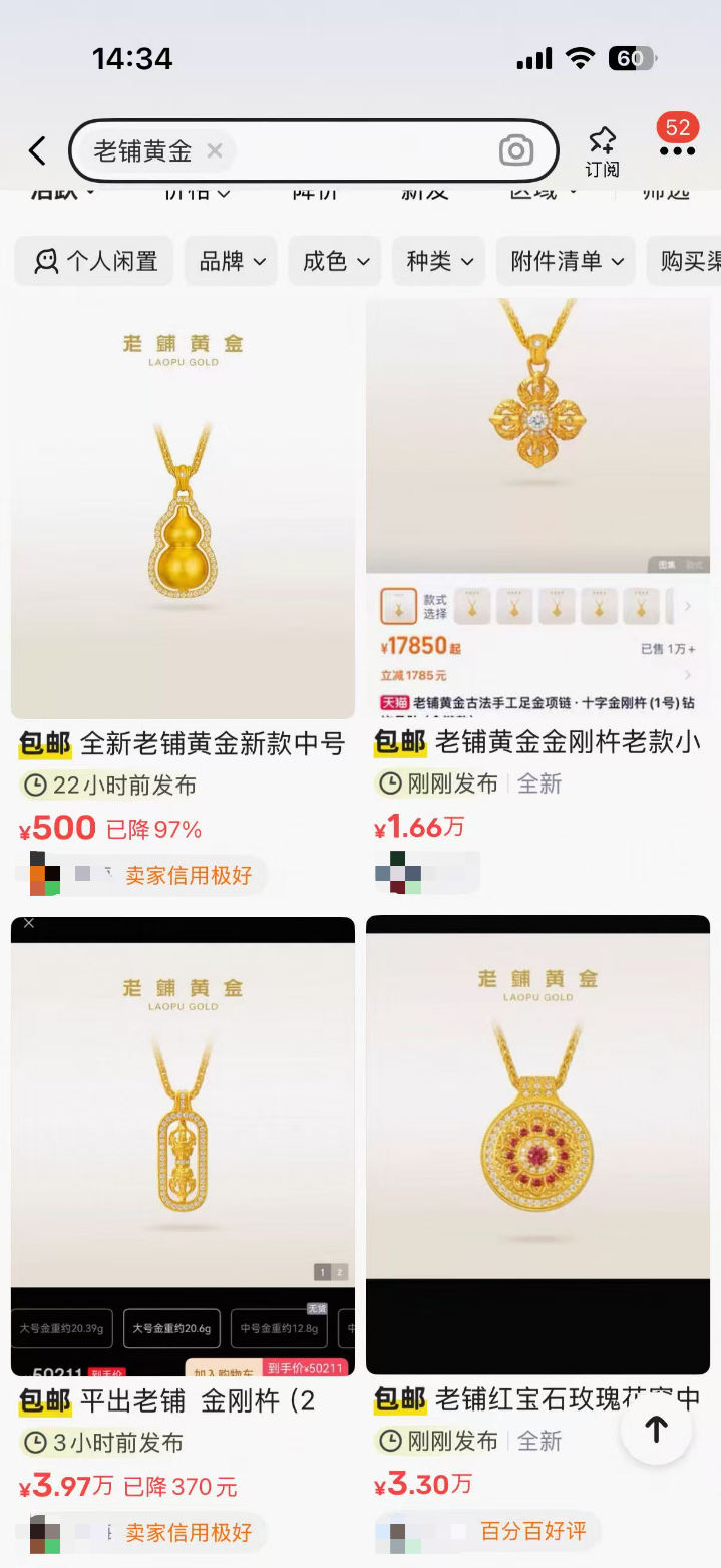 一位卖家告诉潮新闻记者,昨天刷到网上排队4个小时进店,调侃“老铺黄金只剩‘老铺’了”,才知道老铺的新年首涨来了,今天就抓紧时间,上新了“宝贝”。“2月份入手了同款2件金刚杵,金重8.49克,白单证件齐全,目前出一件,价格私聊。”