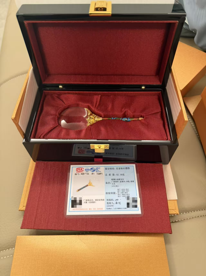 今天,在杭城网友的买金交流群里,一位网友晒出了“重磅款”——黄金放大镜。这款福纹钻饰放大镜珐琅款,总质量52.1克,引来群友集体围观。该网友表示,“涨价前一天硬买的。”
