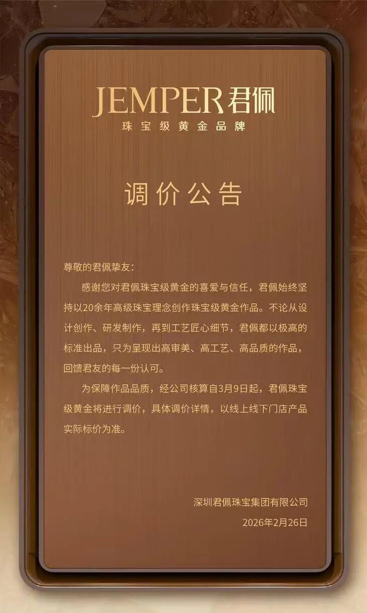 3月9日,君佩也将启动新一轮调价。而从兰州走出的品牌琳朝2月2日已经调价,每克上调280元至500元不等。琳朝的产品多为定制,某些产品周期长达一年。目前琳朝只有兰州有线下门店,网传第二家门店即将落子南京德基广场。