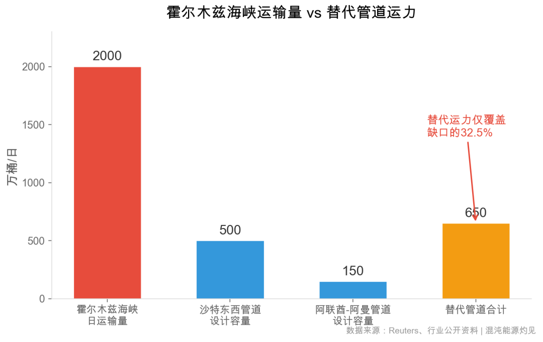 做个对比:OPEC+过去两年减产保价的全部努力,累计约500万桶/日。海峡一旦关闭,市场瞬间失去的供应量是这个数字的4倍。