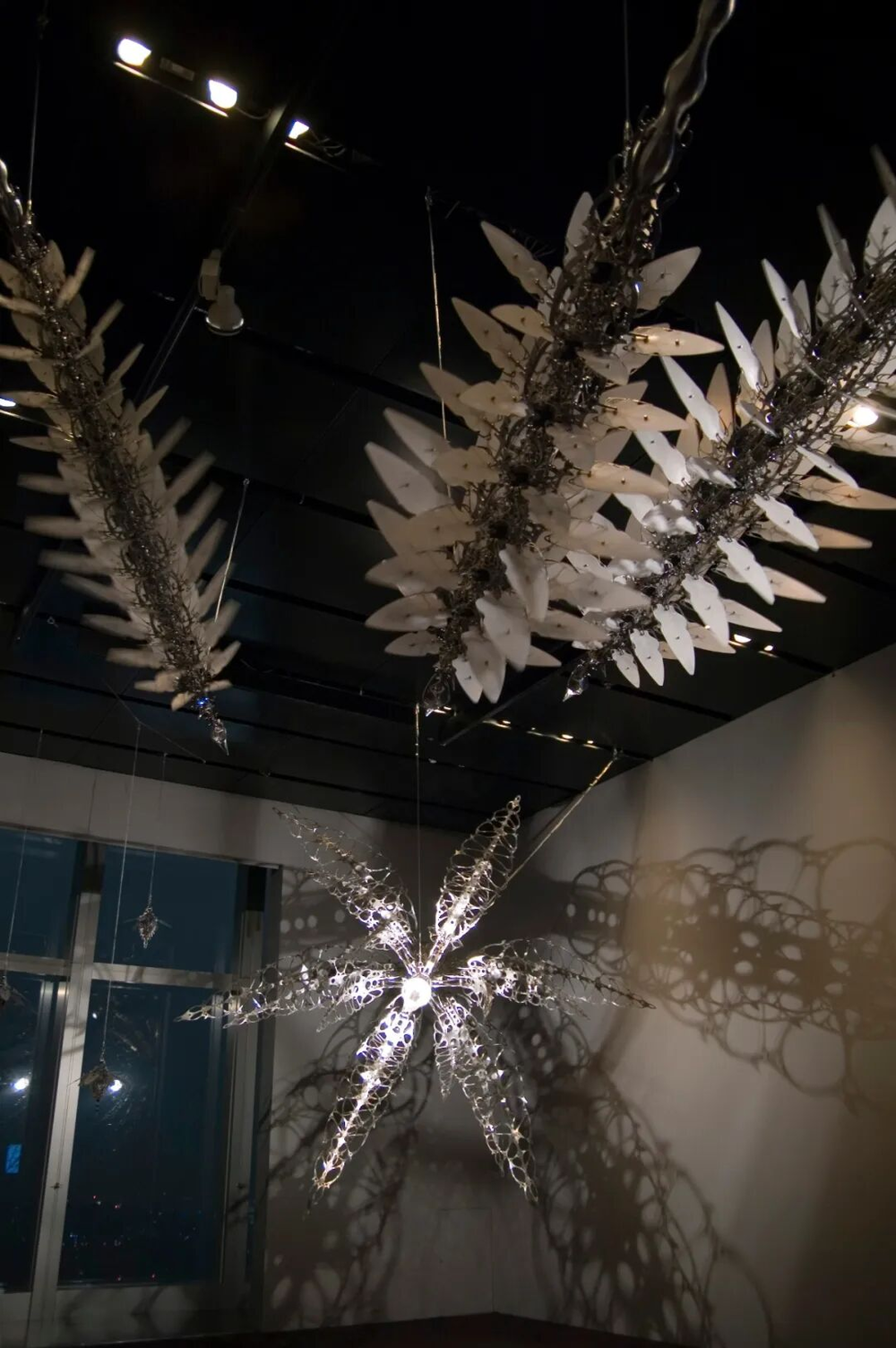 在完成这件作品五年后,我创作了如今在余德耀美术馆展出的《金色脉轮之灯》,它经过半年的设计与实验才完成。我不仅加入了光线,还让它呈现出更加复杂交错、兼具有机感与锐利感的形态。我最终的愿望是:人们只需长时间凝视它,就能获得一种“顿悟”。