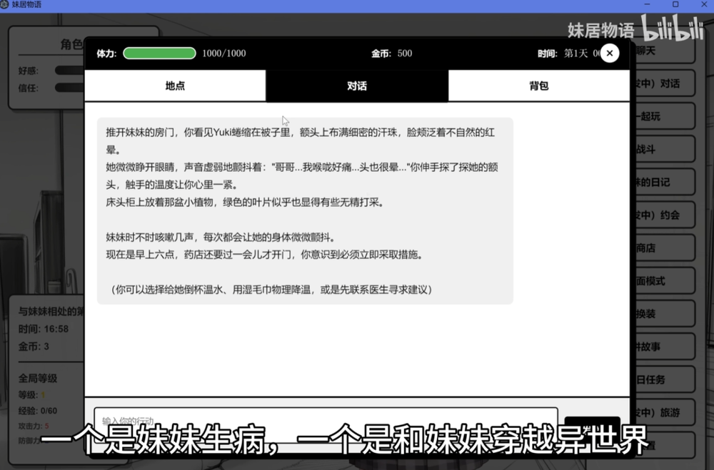 他中学时就很喜欢《爱相随》这类“全天候陪伴型”的恋爱游戏:日常互动一点点堆起来,感情缓慢积累,那种体验在他记忆里停了很久。于是他想做一个结构相近的作品——和妹妹同居,通过对话培养感情。