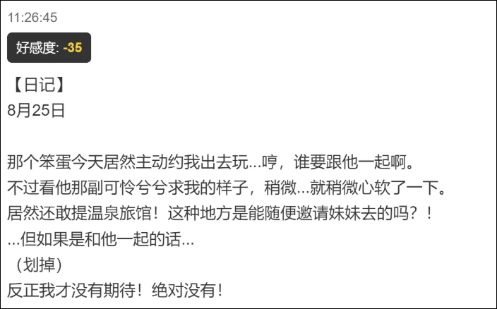 你和妹妹的日常交流,会被她以“妹妹视角”记录下来——同一段对话换一种叙述方式,情绪的起伏也会被重新折出来。你能从日记里更直观地感受到她的感情变化。这种“全新视角的全新体验”,也是不少人觉得它有别于传统GalGame的原因之一。