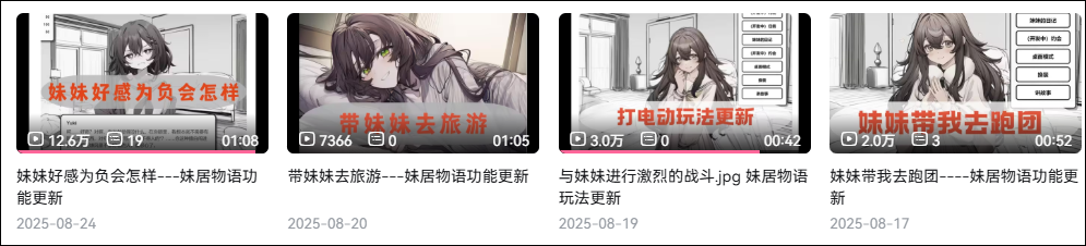 《妹居物语》最初的版本其实非常简单:一张立绘,一套对话系统,没有复杂玩法,一套灵感取自《妹相随》的UI,还有一段谈不上完整剧情。但就是这样略显简陋的一个游戏,在B站公开后很快被玩家注意,粉丝群也迅速爆满。