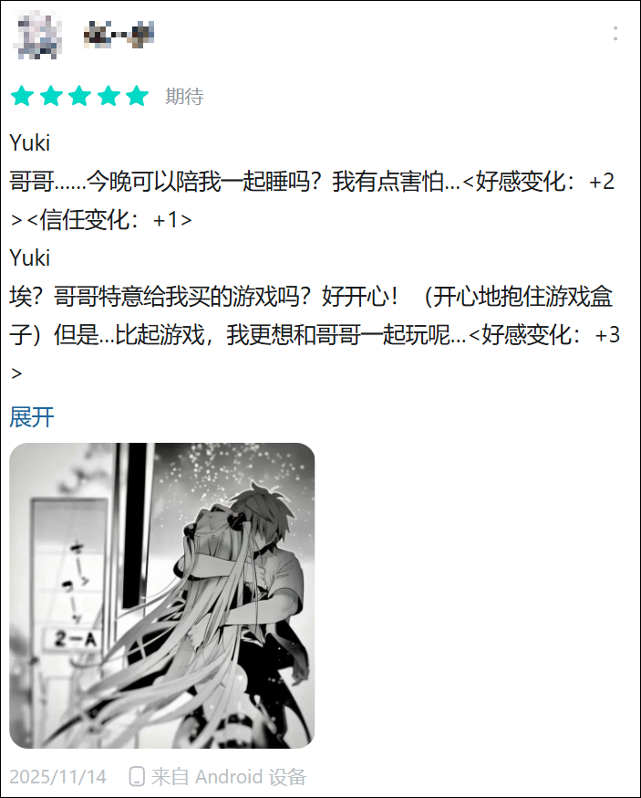 只不过即使有本地记录保存,在妹妹失忆的那个瞬间,还是挺糟心的,评论区有不少:哥哥(玩家)在屏幕外泪眼婆娑:“往事种种,你当真不记得了?”而失去了所有记忆的Yuki在屏幕里:“再无话说请速速动手!”