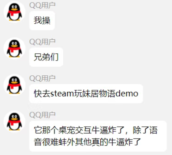 B站各种切片,林林总总加起来有百万播放,更何况QQ群还有一堆聊天记录,在传颂《妹居物语》的与众不同。